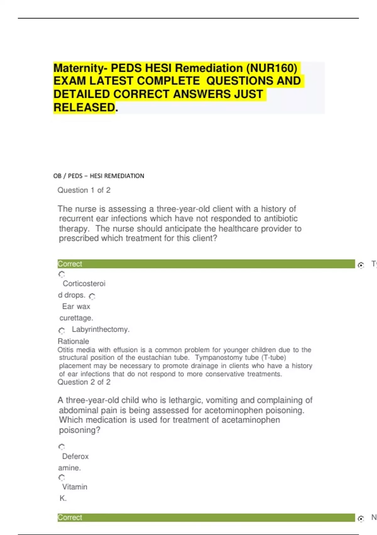 Maternity- PEDS HESI Remediation (NUR160) EXAM LATEST COMPLETE QUESTIONS AND DETAILED CORRECT ANSWERS JUST RELEASED.