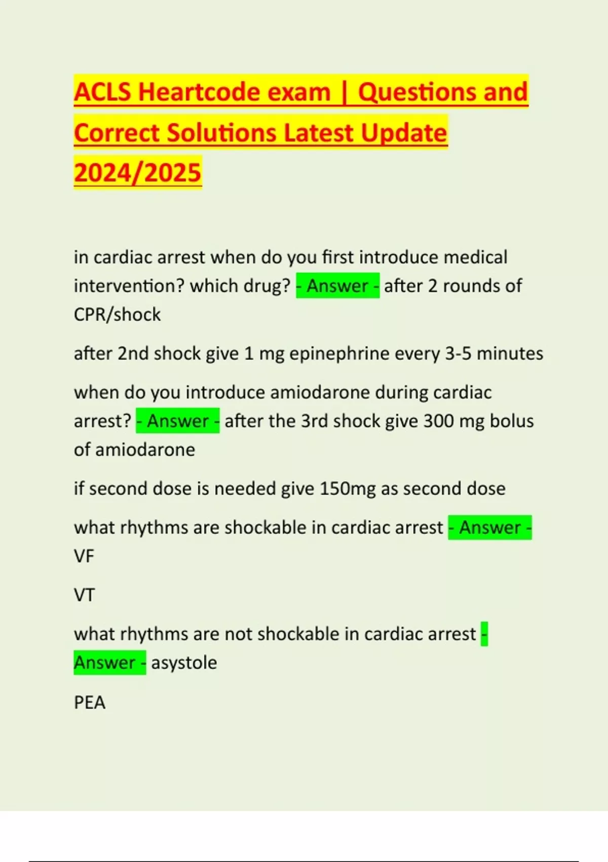 ACLS Heartcode exam | Questions and Correct Solutions Latest Update 2024/2025