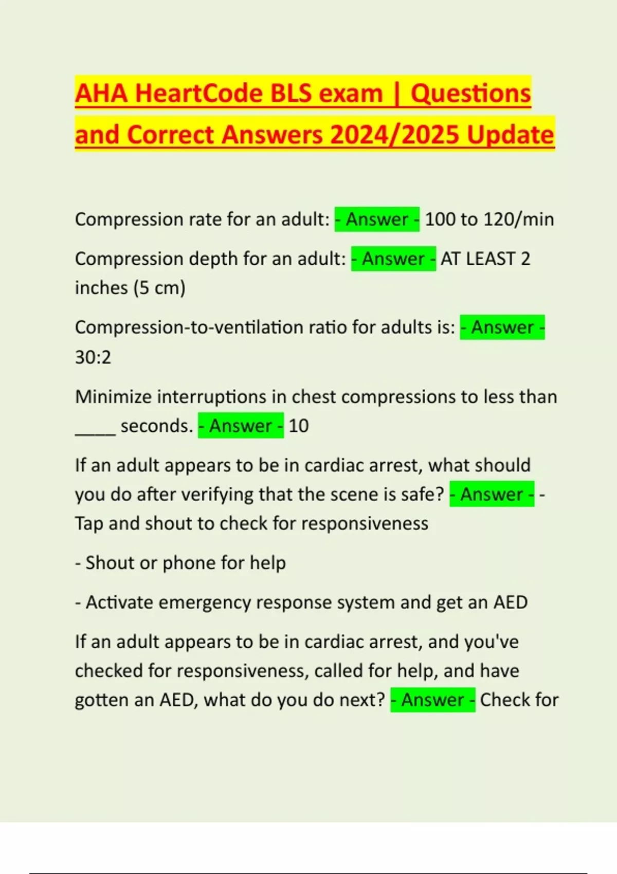 AHA HeartCode BLS exam | Questions and Correct Answers 2024/2025 Update