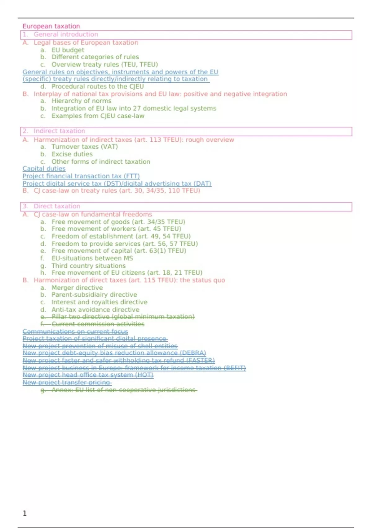 A. Harmonization of indirect taxes (art. 113 TFEU): rough overview