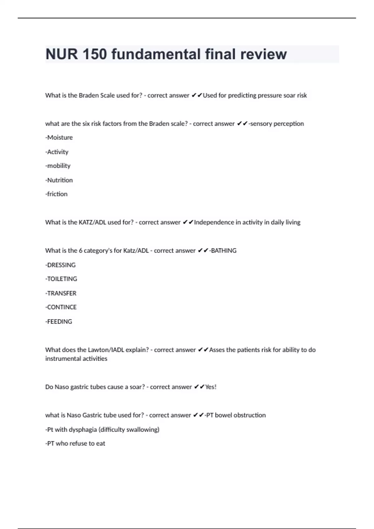 NUR 150 fundamental final review