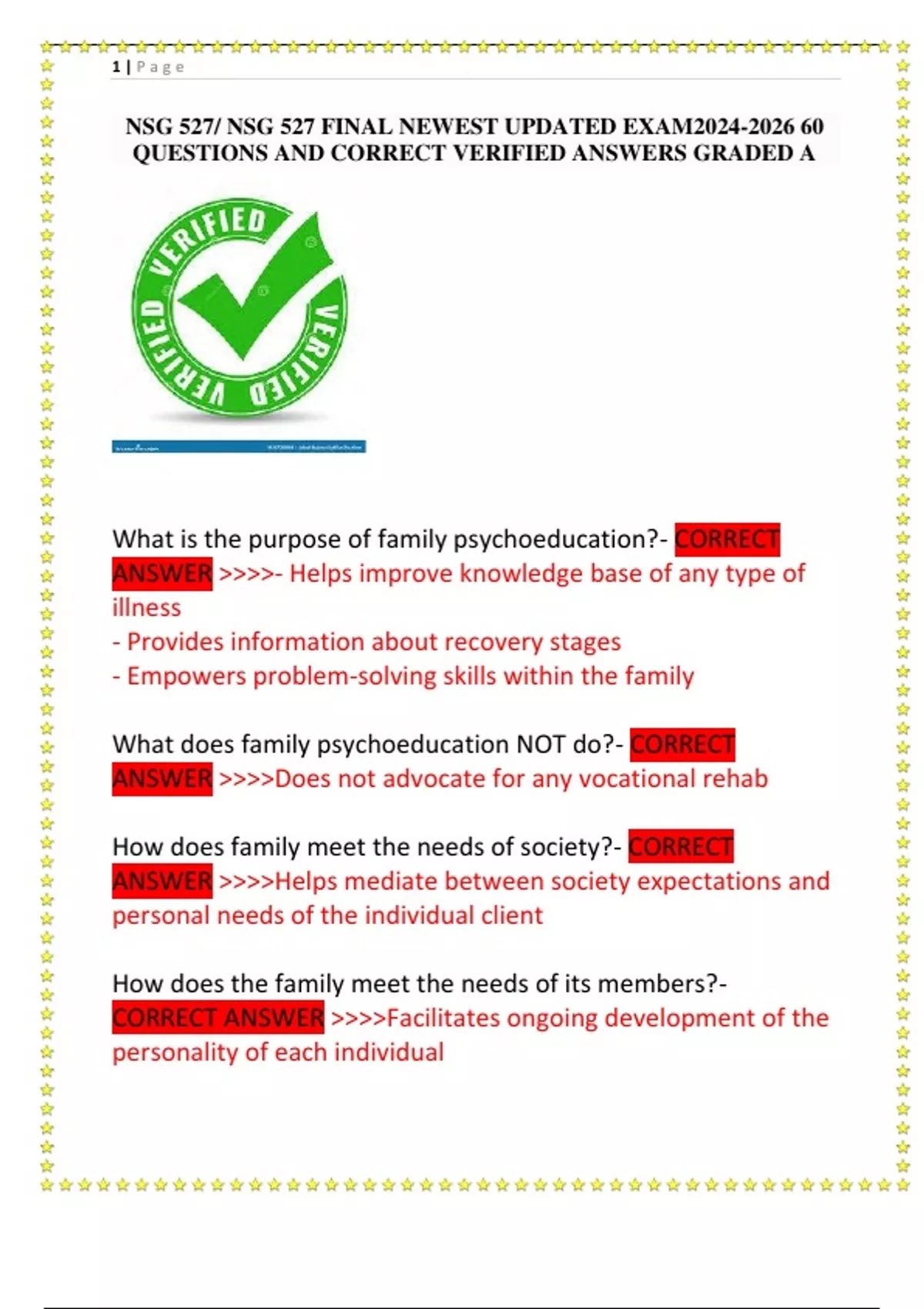 NSG 527/ NSG 527 FINAL NEWEST UPDATED EXAM QUESTIONS AND CORRECT VERIFIED ANSWERS GRADED A NSG 527/ NSG 527 FINAL NEWEST UPDATED EXAM QUESTIONS AND CORRECT VERIFIED ANSWERS GRADED ANSG 527/ NSG 527 FINAL NEWEST UPDATED EXAM QUESTIONS AND CORRECT VERIFIED ANSWERS GRADED A