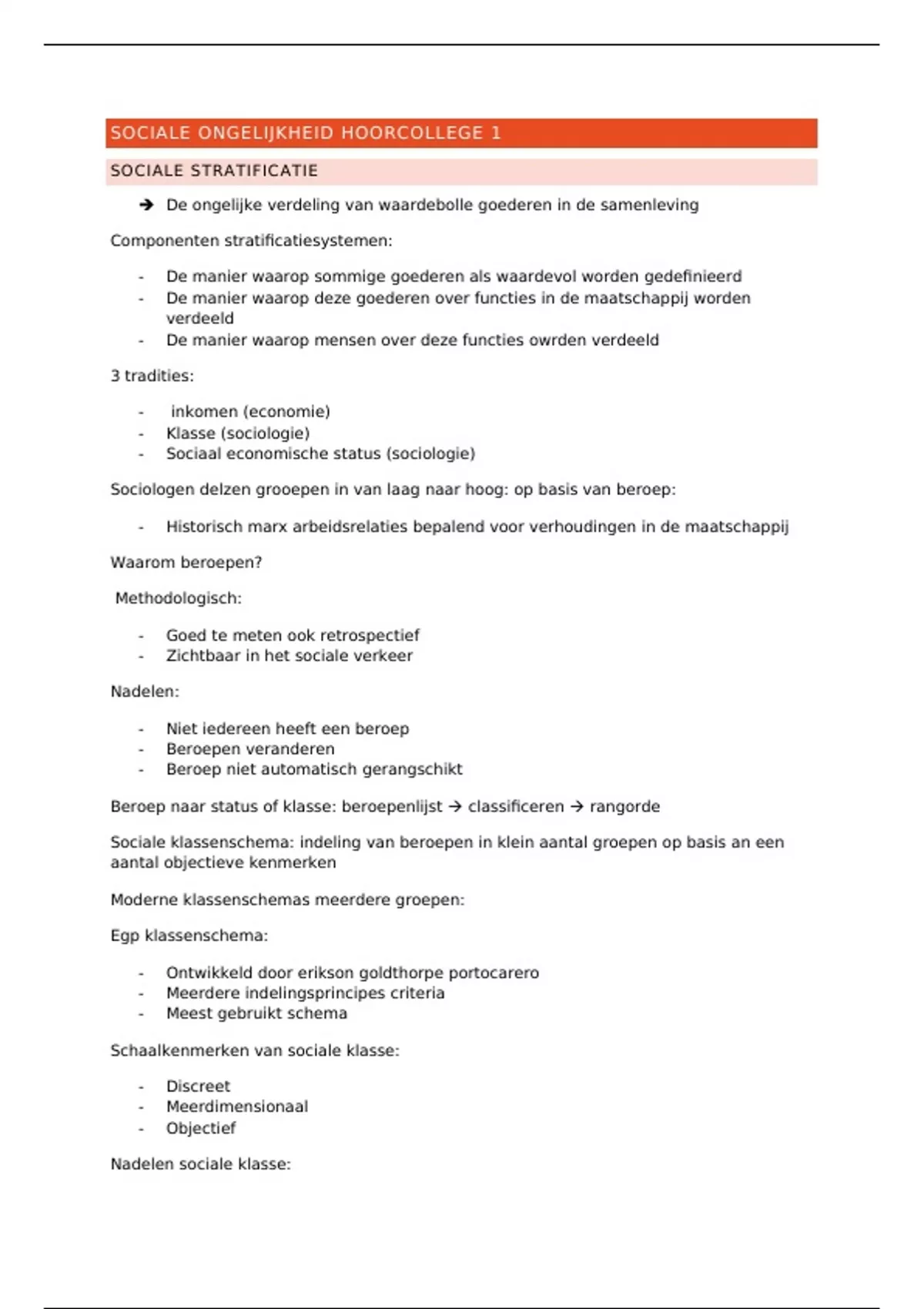 SOCIALE ONGELIJKHEID HOORCOLLEGE 1