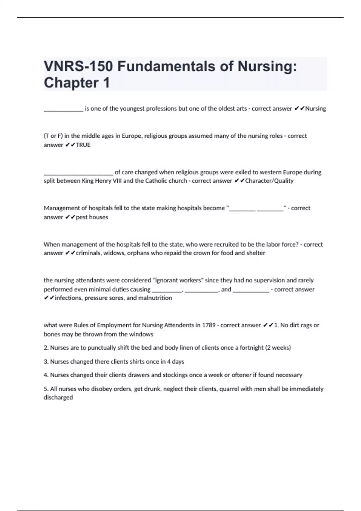 VNRS-150 Fundamentals of Nursing: Chapter 1 verified already passed