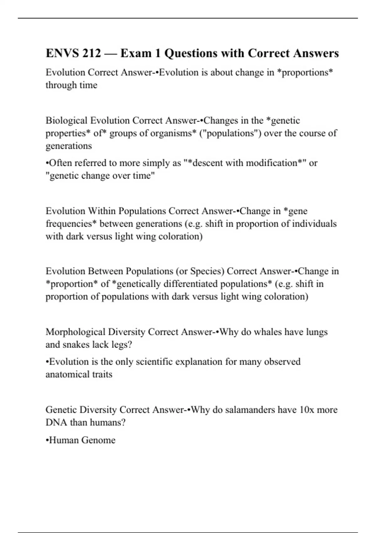 Evolution Correct Answer-•Evolution is about change in *proportions* through time