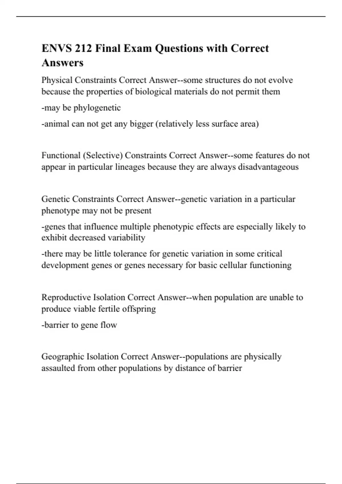 Reproductive Isolation Correct Answer--when population are unable to produce viable fertile offspring