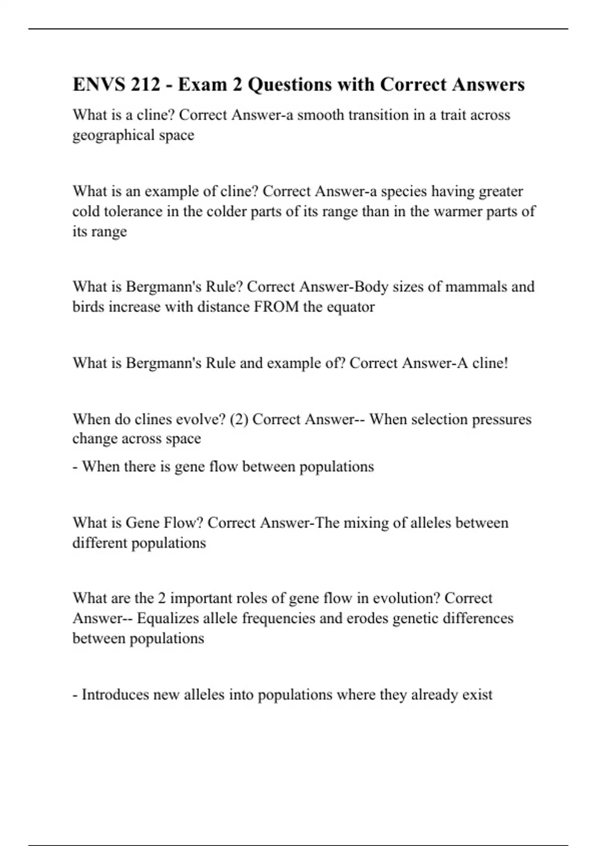 When do clines evolve? (2) Correct Answer-- When selection pressures change across space