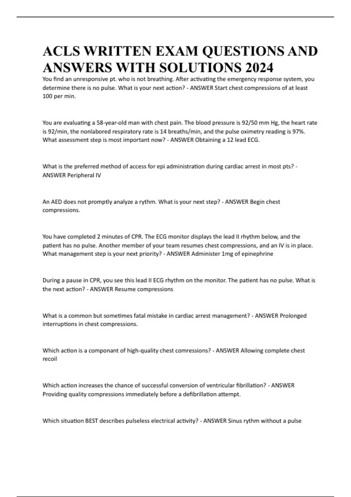 ACLS WRITTEN EXAM QUESTIONS AND ANSWERS WITH SOLUTIONS 2024