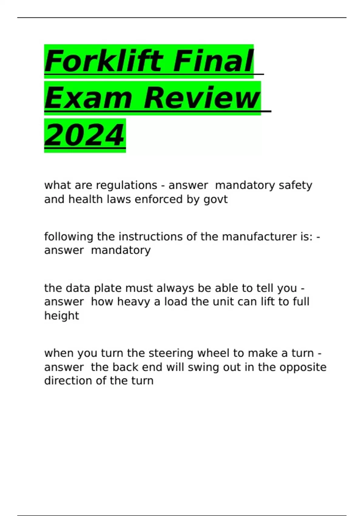 what are regulations - answer mandatory safety