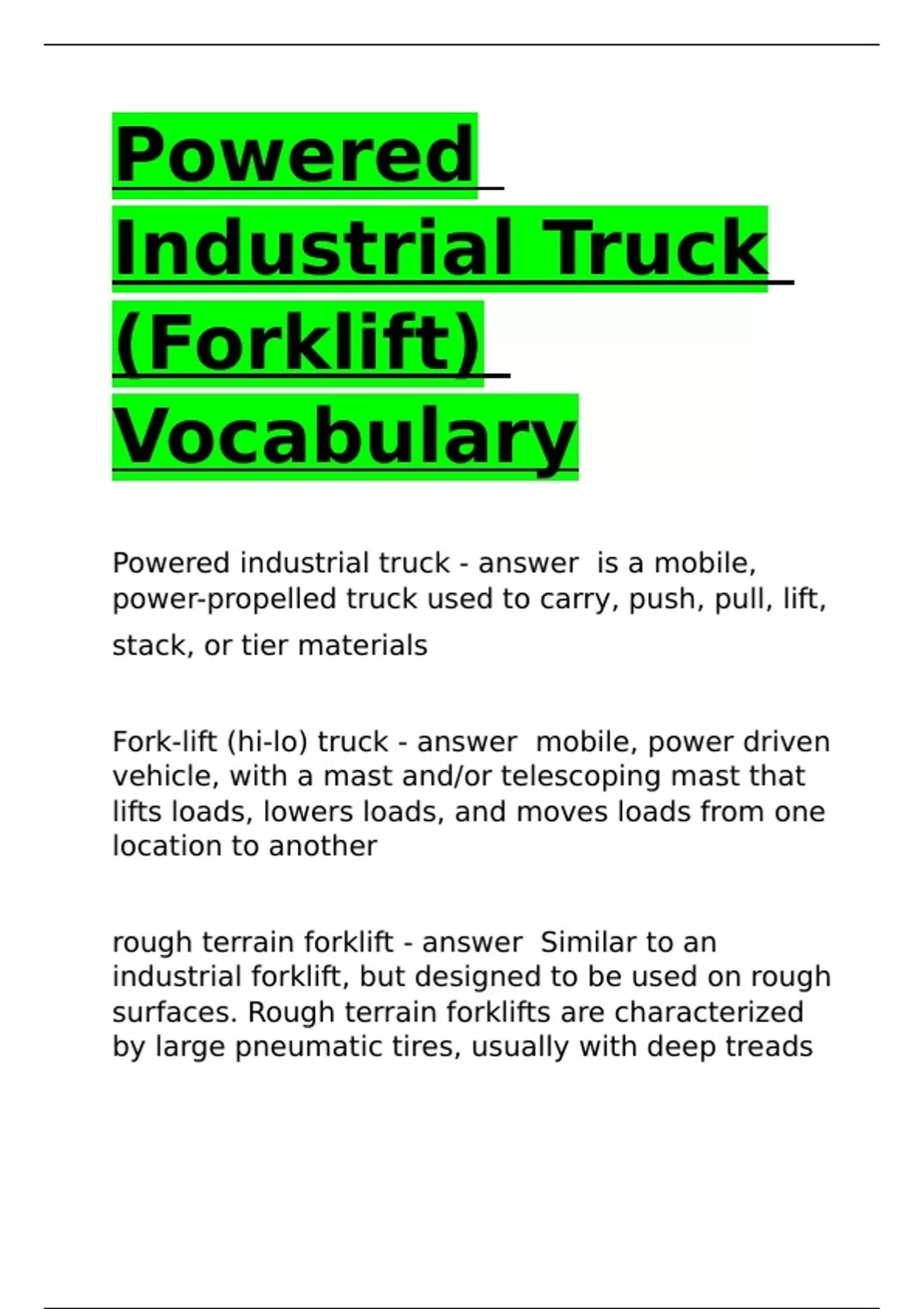 rough terrain forklift - answer Similar to an