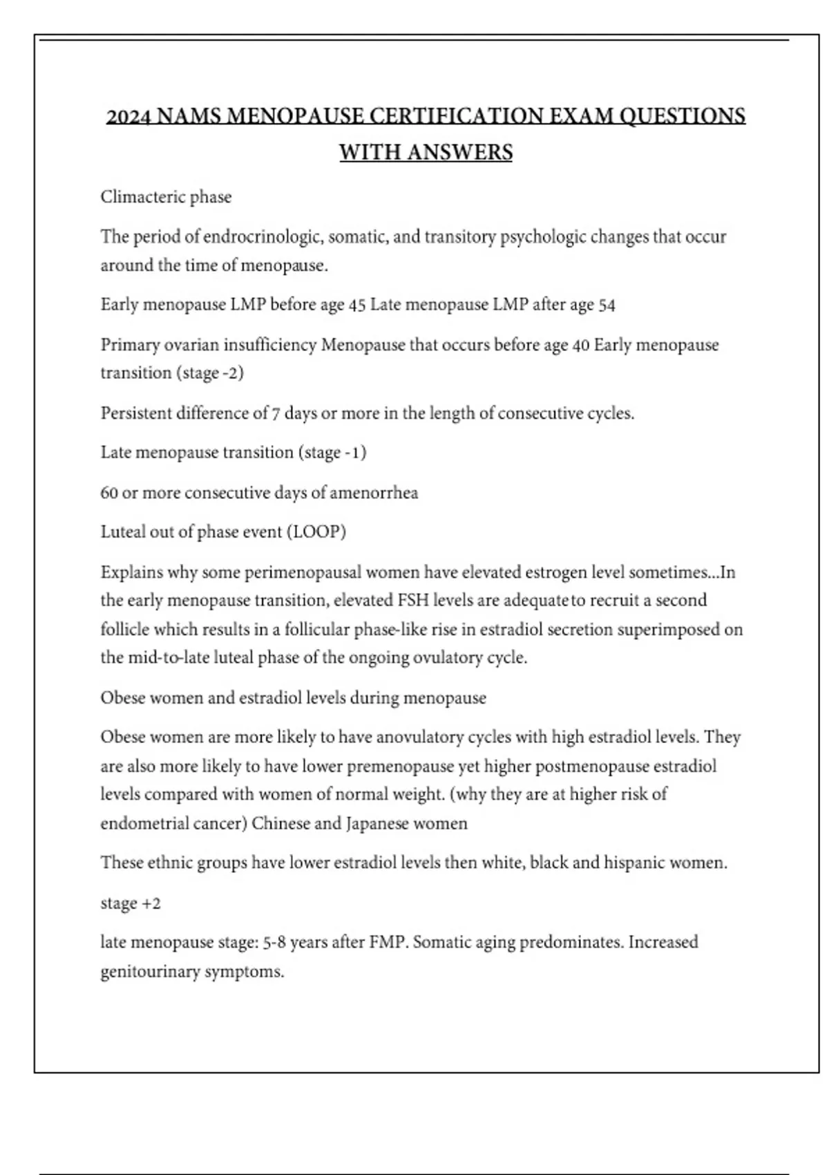 NAMs Menopause Certification Exam 2024 with complete solution