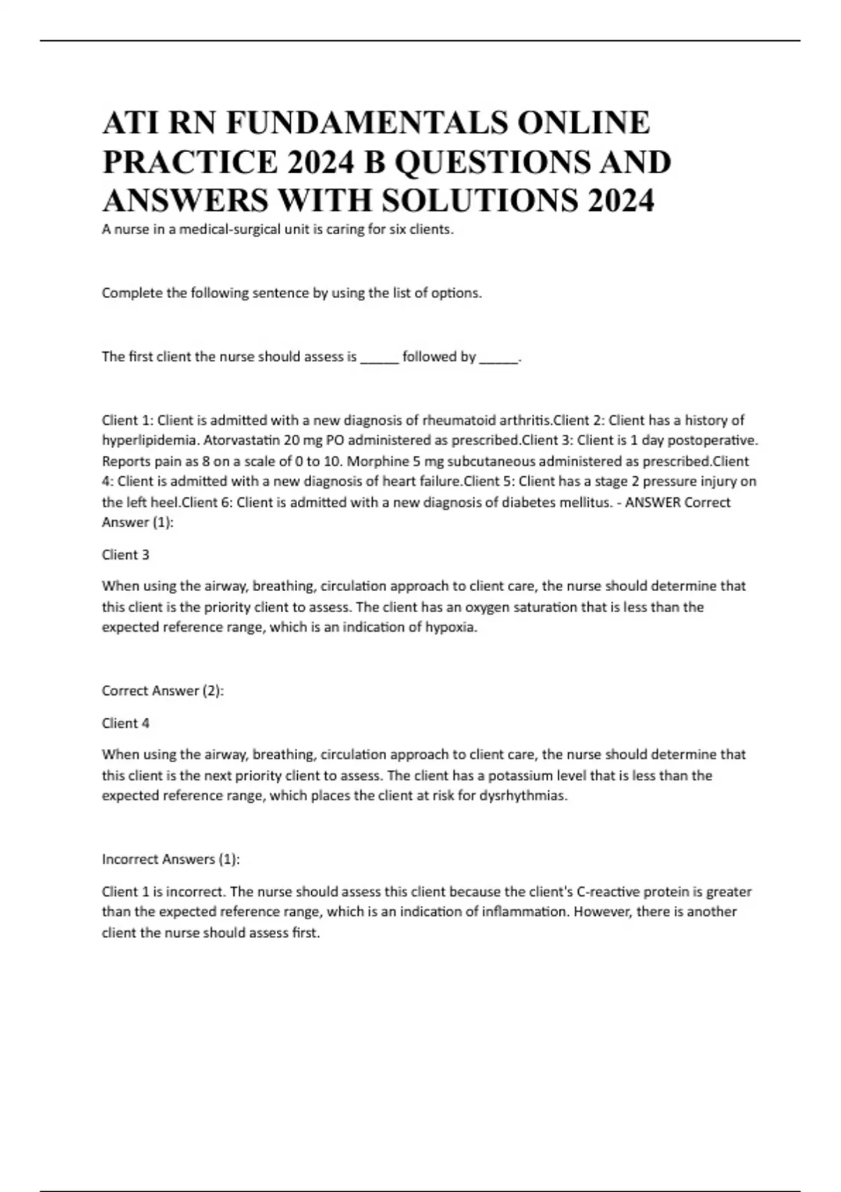 ,Client 2 is incorrect. The nurse should assess this client because the client's cholesterol level is greater