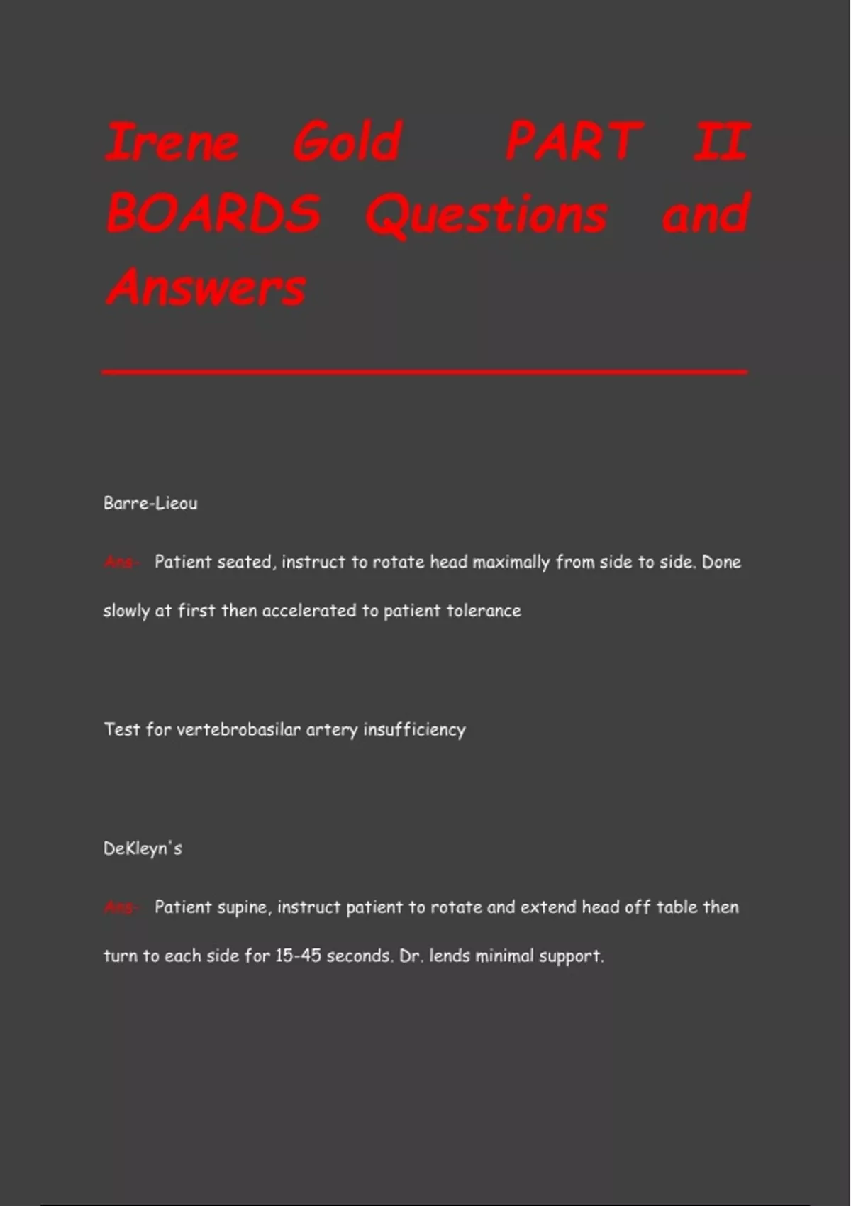 ,Test for vertebrobasilar artery insufficiency