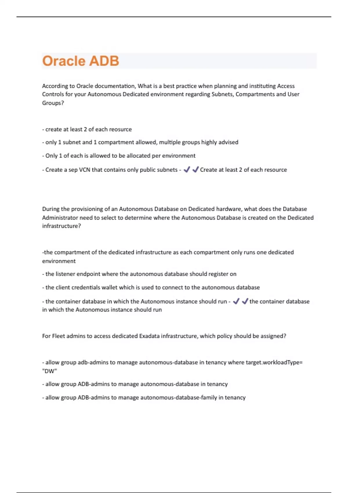 - virtual cloud network, compartments, policies, and autonomous exadata infrastructure
