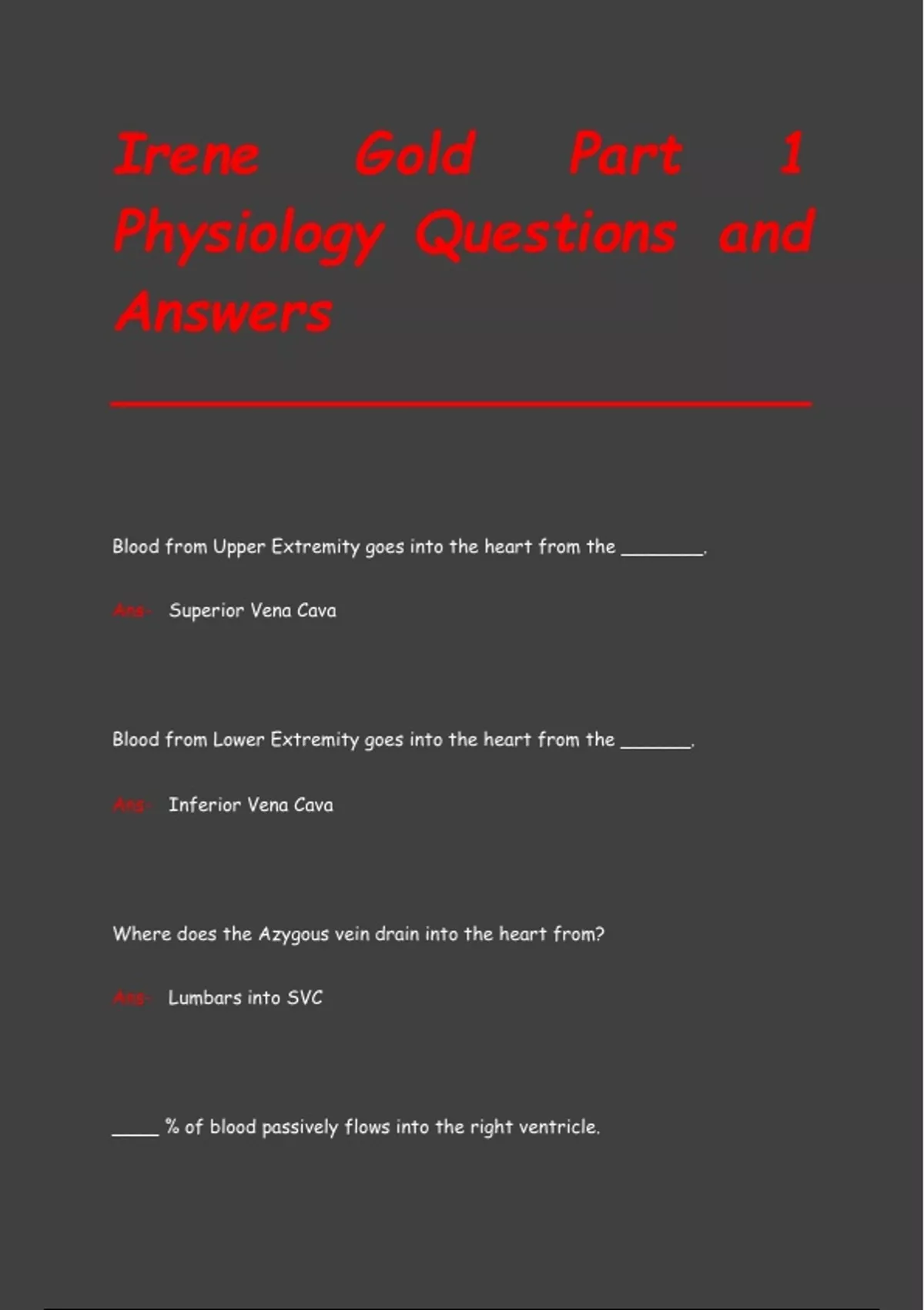 Physiology Questions and