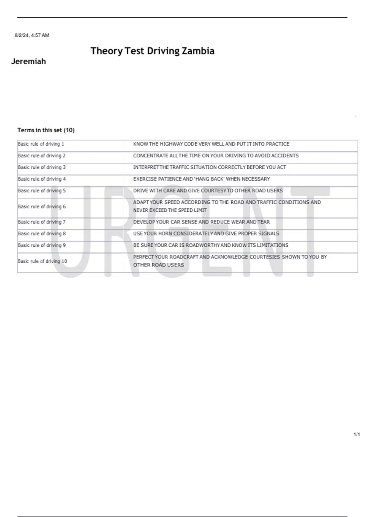 Basic rule of driving 1 KNOW THE HIGHWAY CODE VERY WELL AND PUT IT INTO PRACTICE