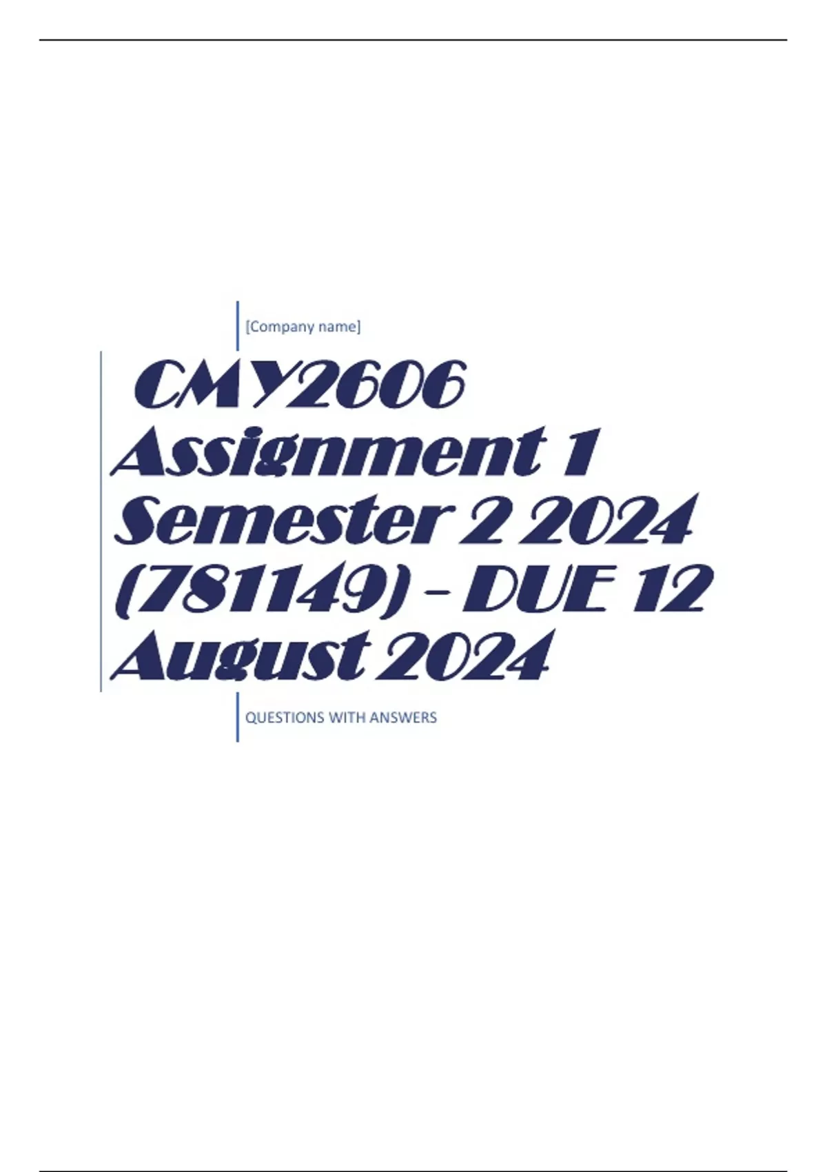 QUESTIONS WITH ANSWERS CMY2606 Assignment 1 Semester 2 2024 (781149) - DUE 12 August 2024