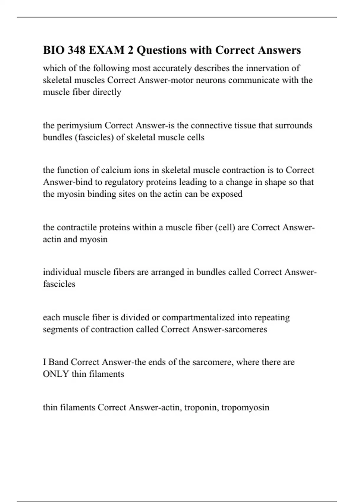 the perimysium Correct Answer-is the connective tissue that surrounds