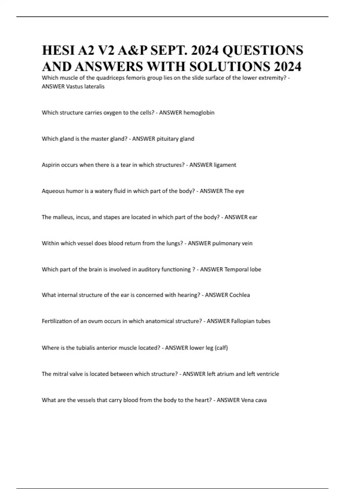 HESI A2 V2 A&P SEPT. 2024 QUESTIONS AND ANSWERS WITH SOLUTIONS 2024