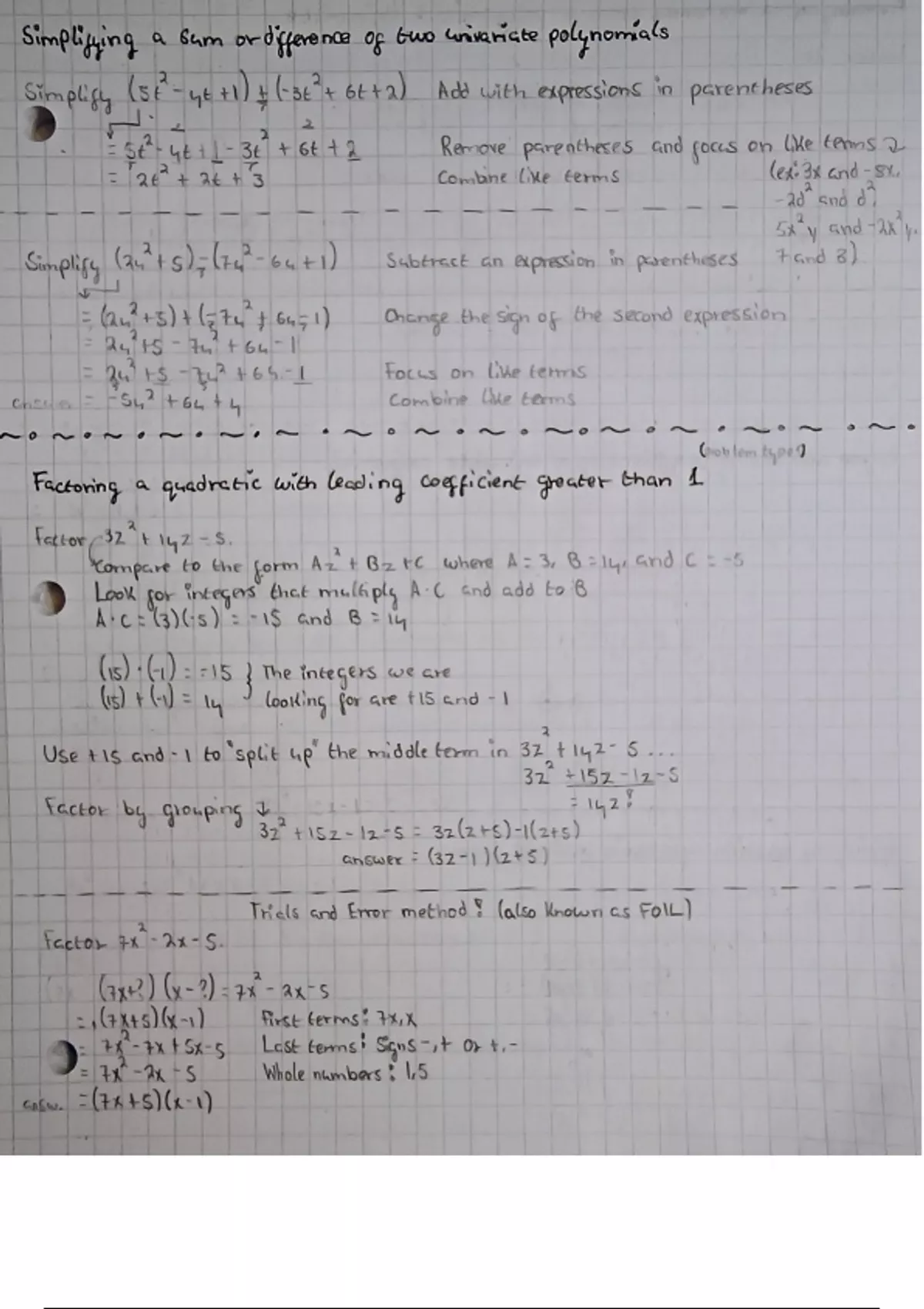 Simplifying a sum or difference of two univariate polynomials | Factoring a quadratic with leading coefficient greater than 1