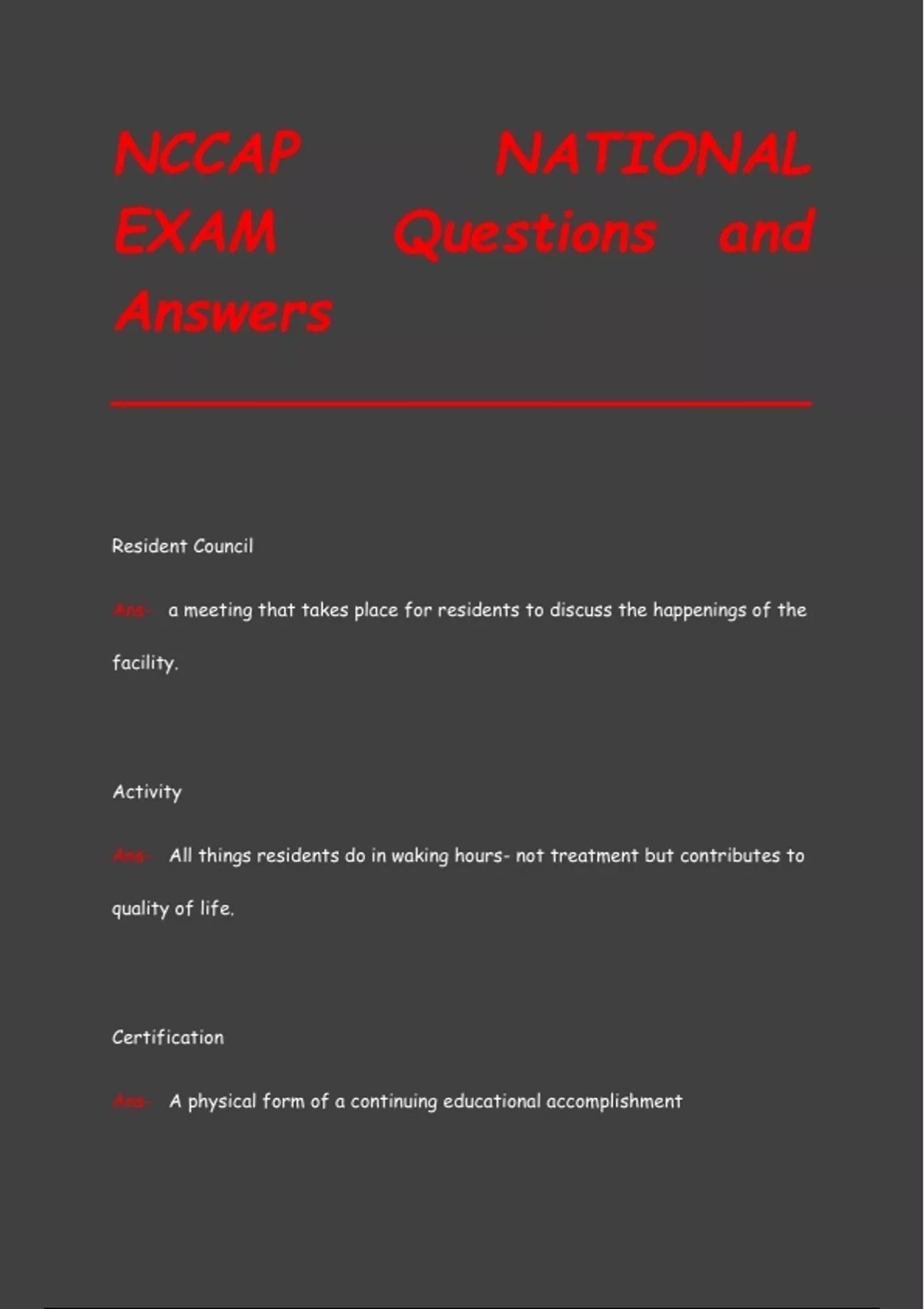 NCCAP NATIONAL EXAM Questions and Answers