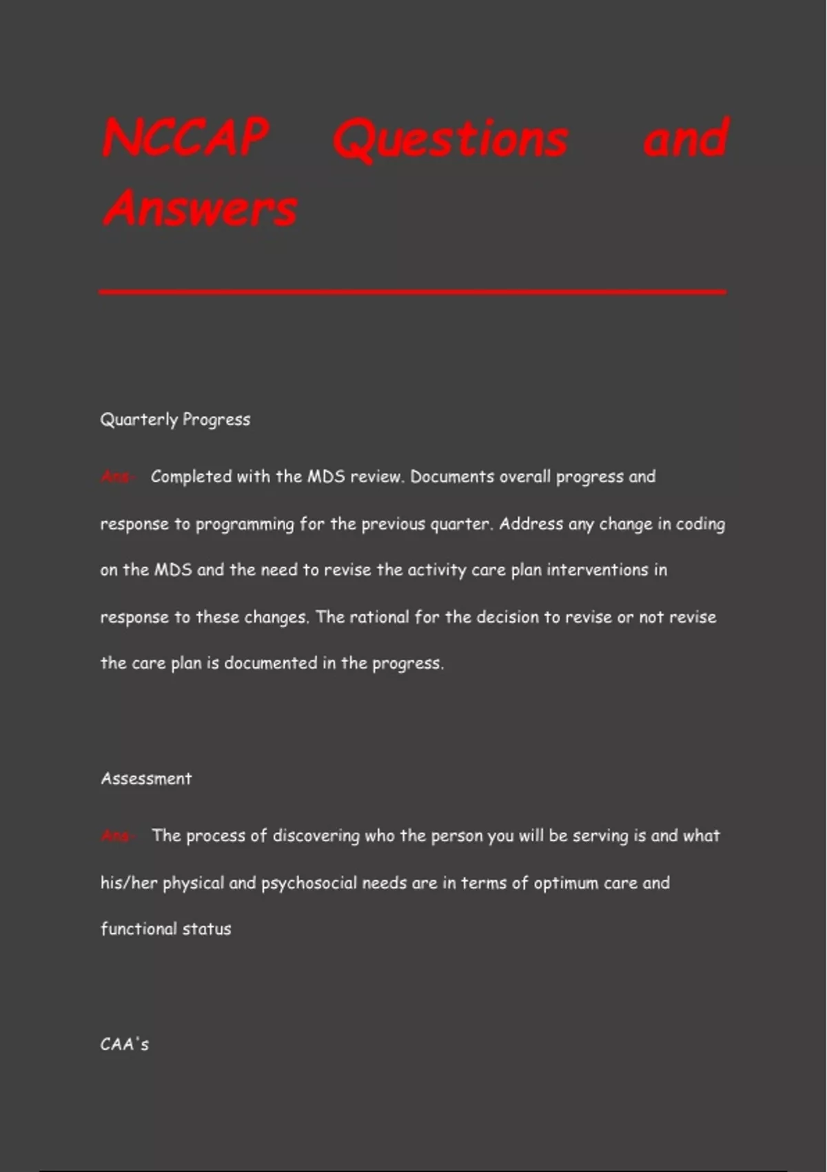 NCCAP Questions and Answers