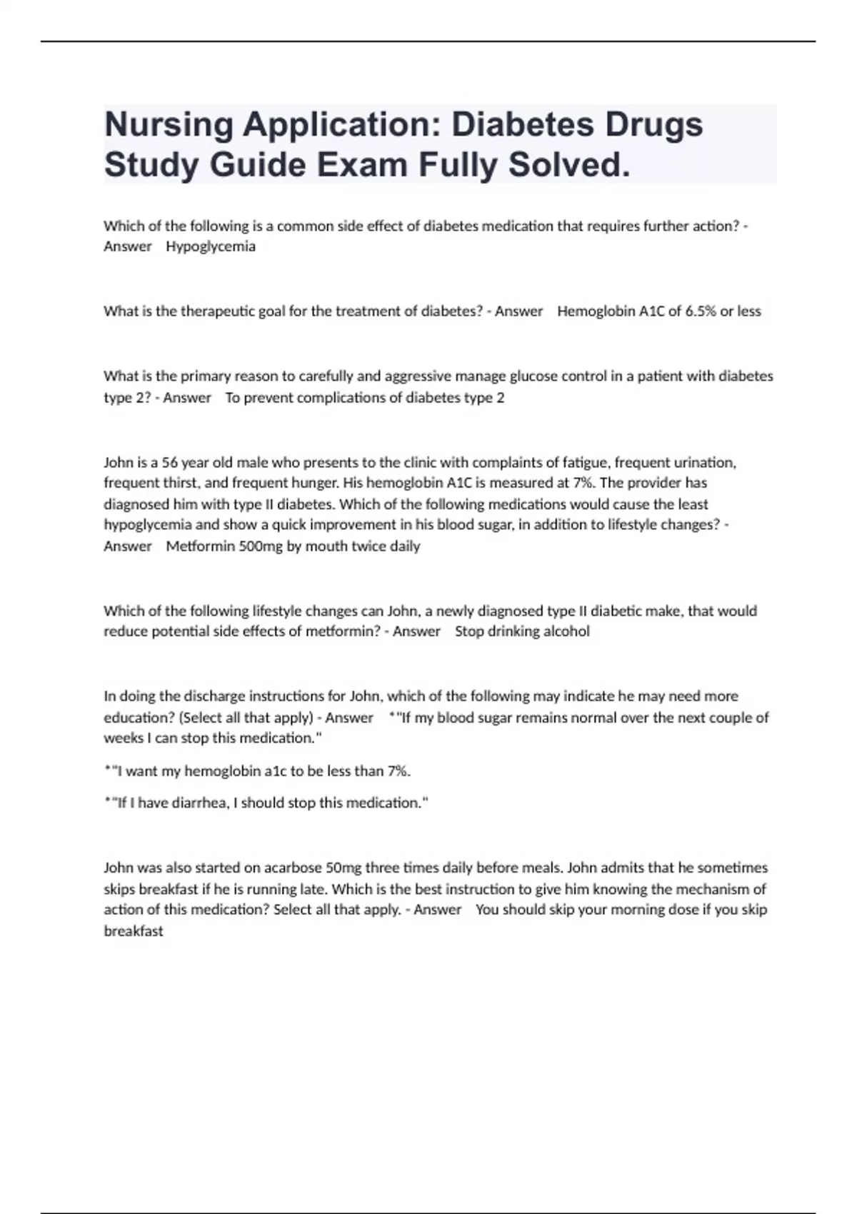 What is the therapeutic goal for the treatment of diabetes? - Answer Hemoglobin A1C of 6.5% or less