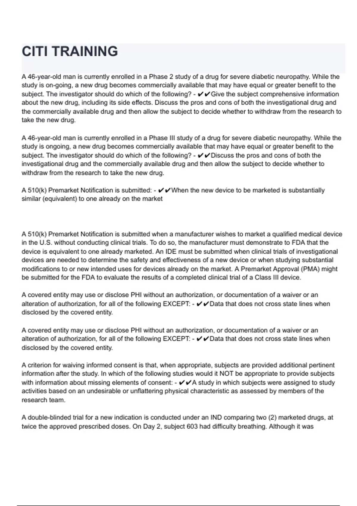 with information about missing elements of consent: - ✔✔A study in which subjects were assigned to study