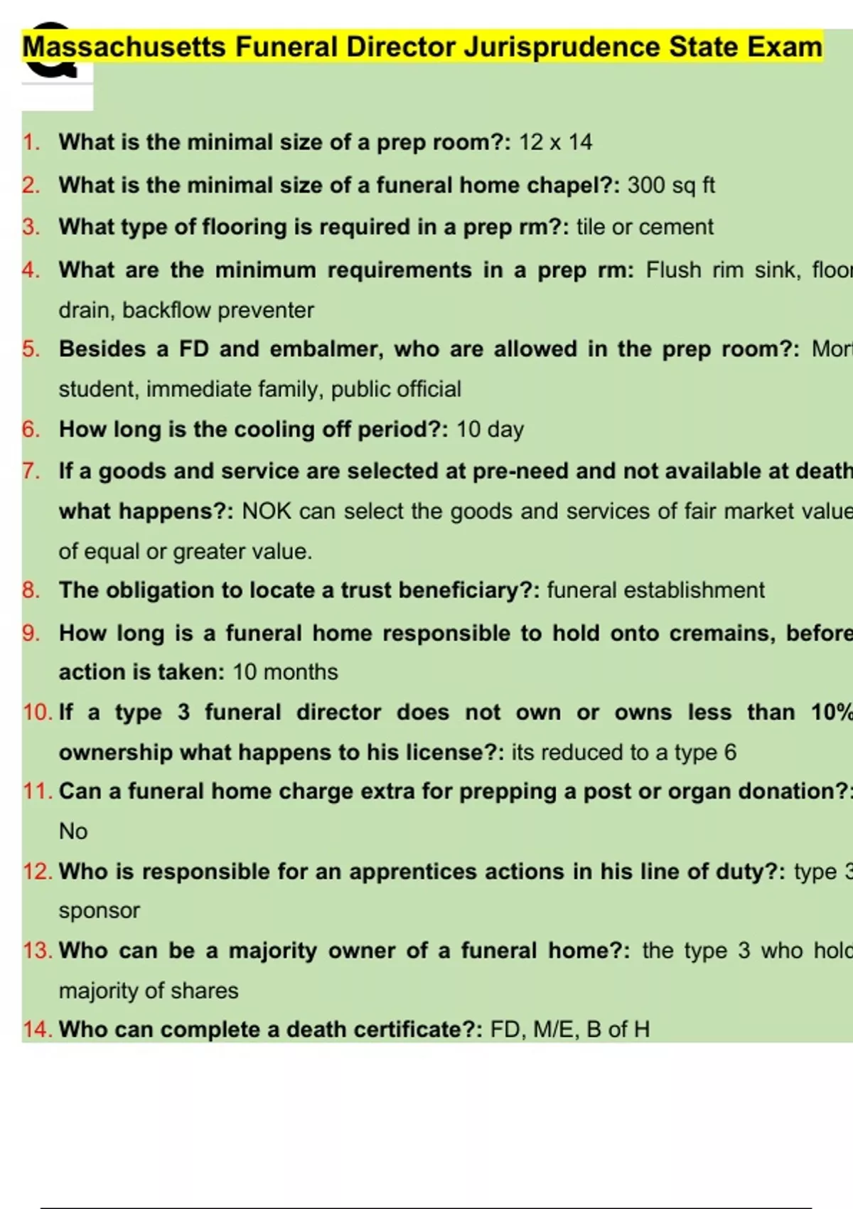 11. Can a funeral home charge extra for prepping a post or organ donation?: