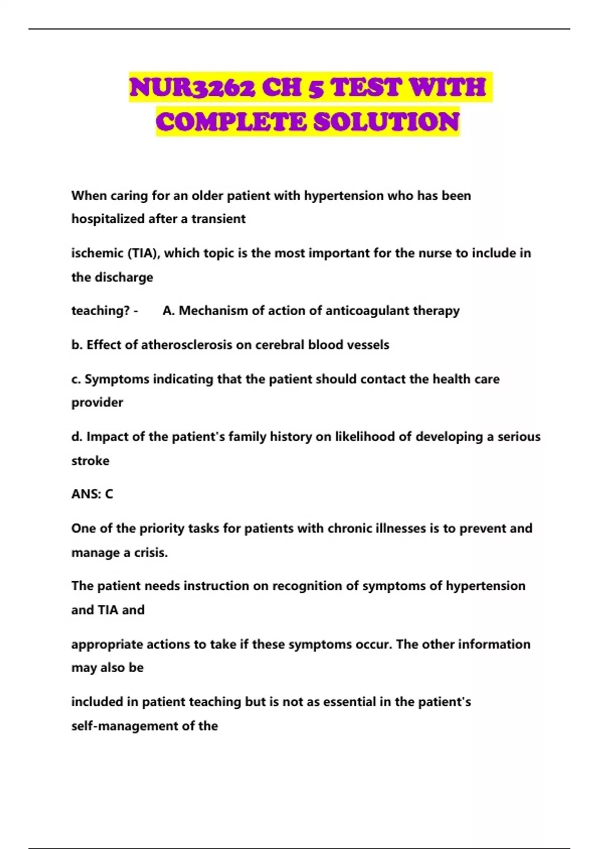 ischemic (TIA), which topic is the most important for the nurse to include in