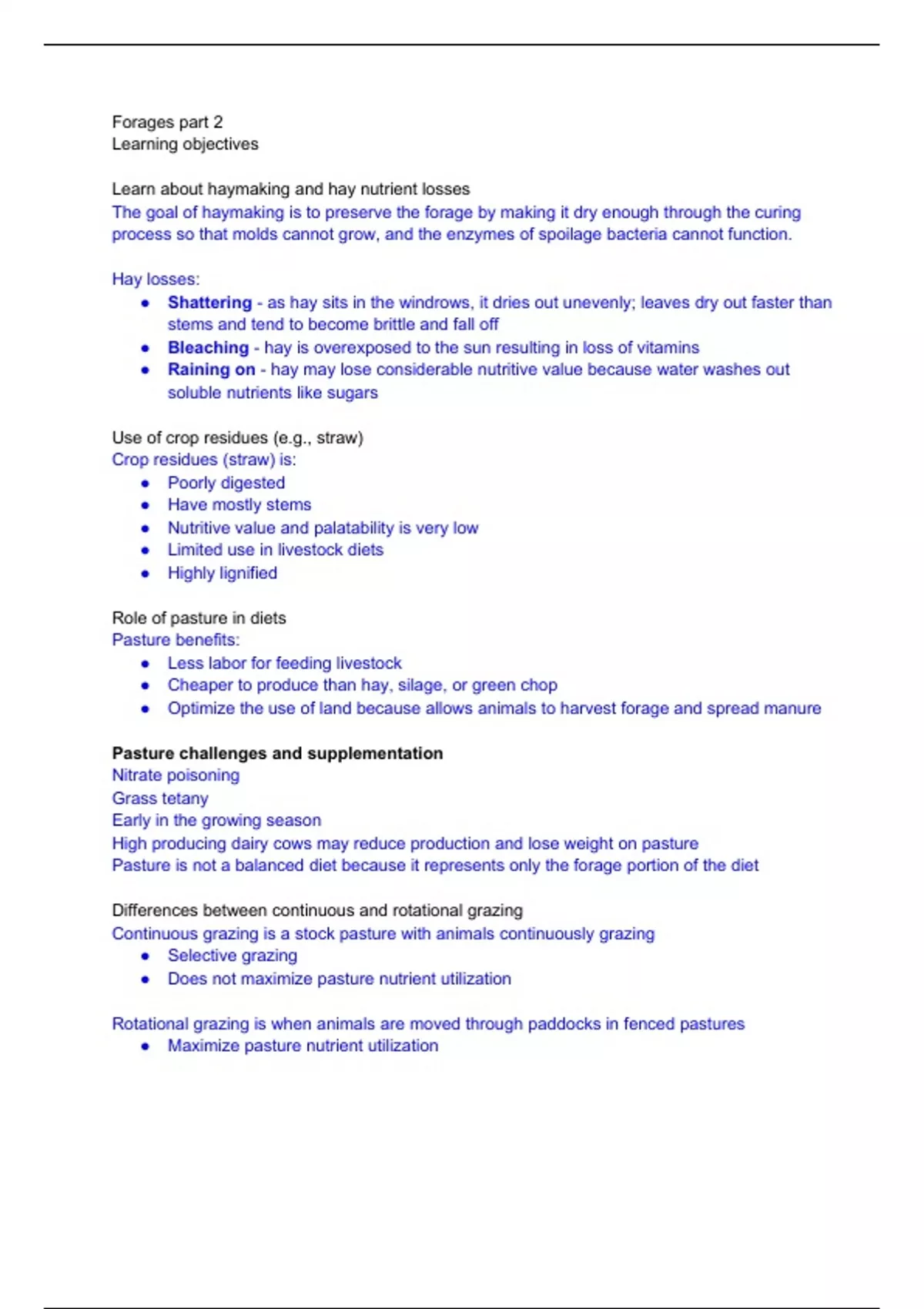 ● Bleaching - hay is overexposed to the sun resulting in loss of vitamins