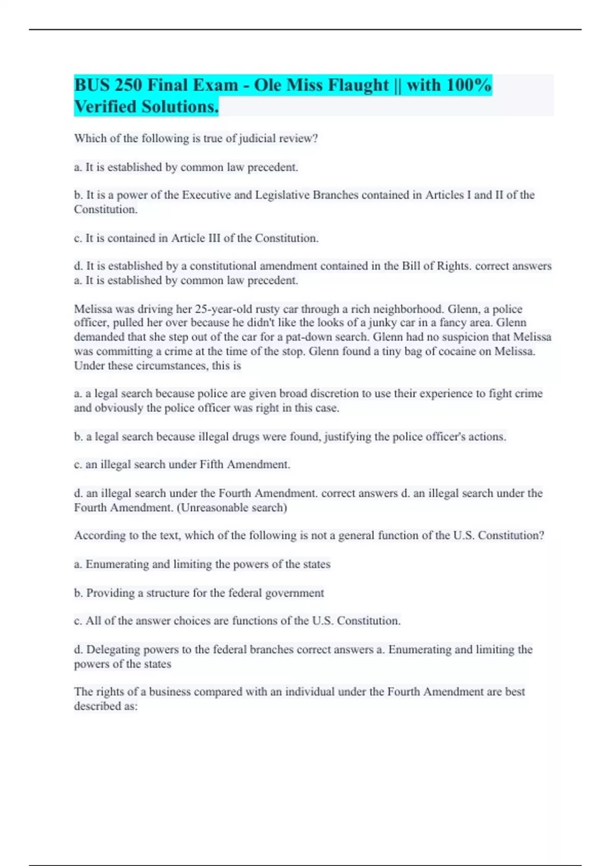 answers a. A business has lesser rights to be free from government searches than an individual.