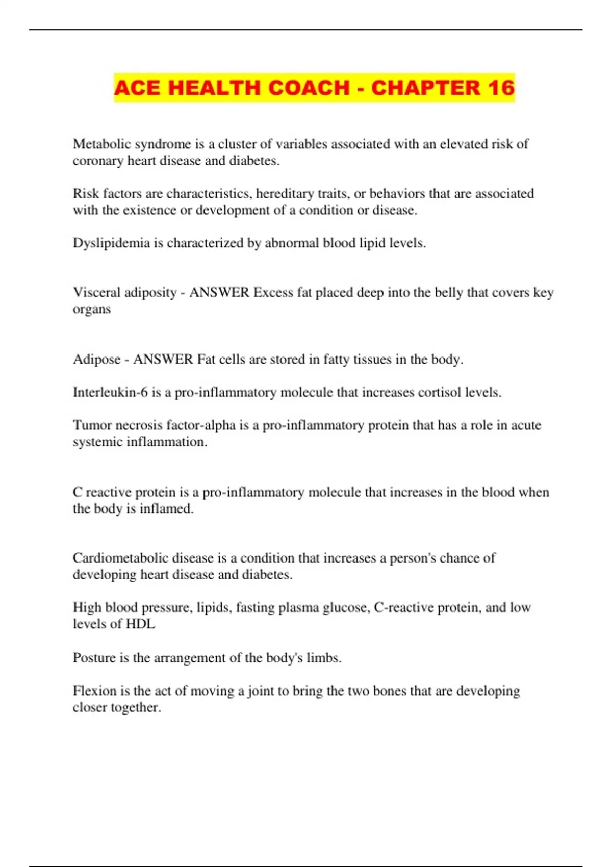 Visceral adiposity - ANSWER Excess fat placed deep into the belly that covers key