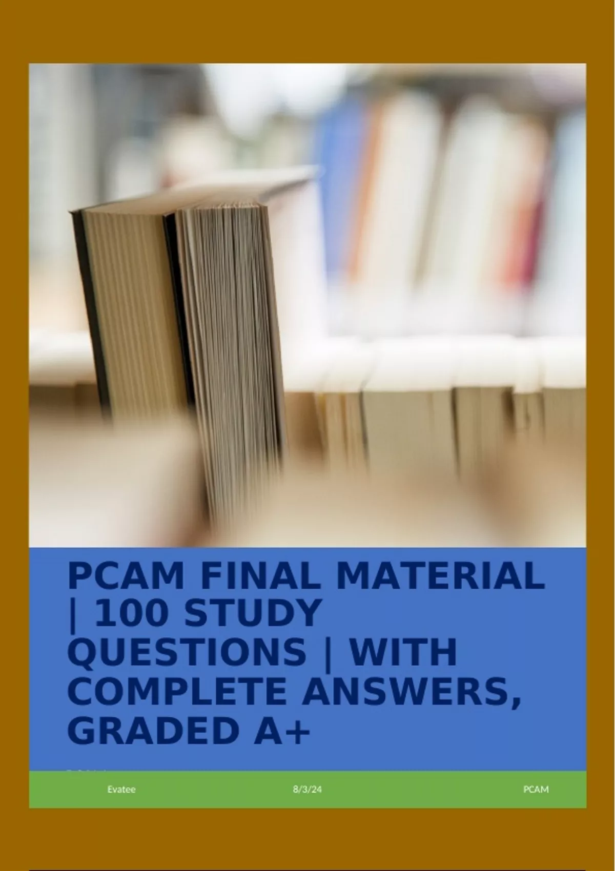 PCAM FINAL MATERIAL | 100 STUDY QUESTIONS | WITH COMPLETE ANSWERS, GRADED A+