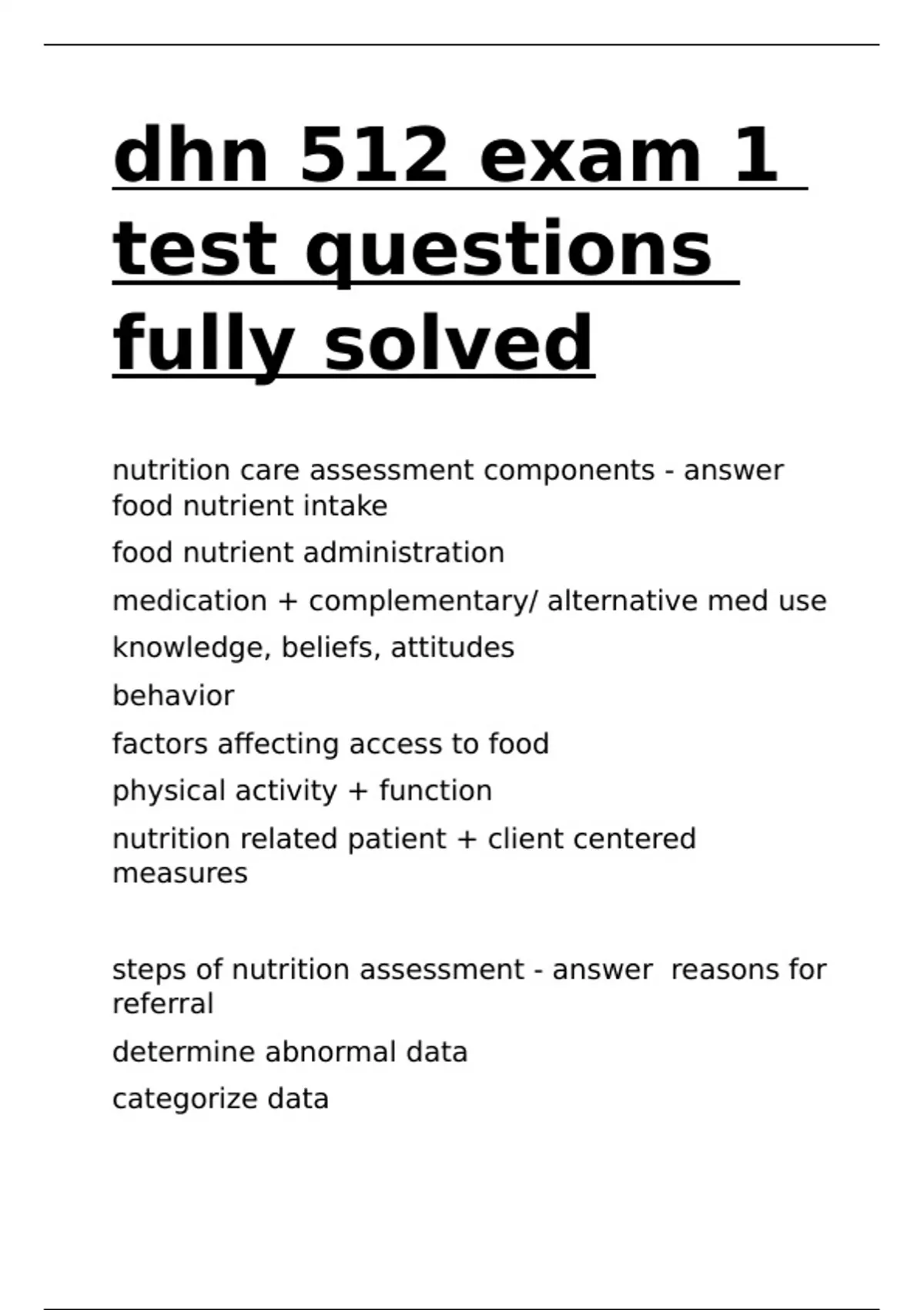 dhn 512 exam 1 test questions fully solved.