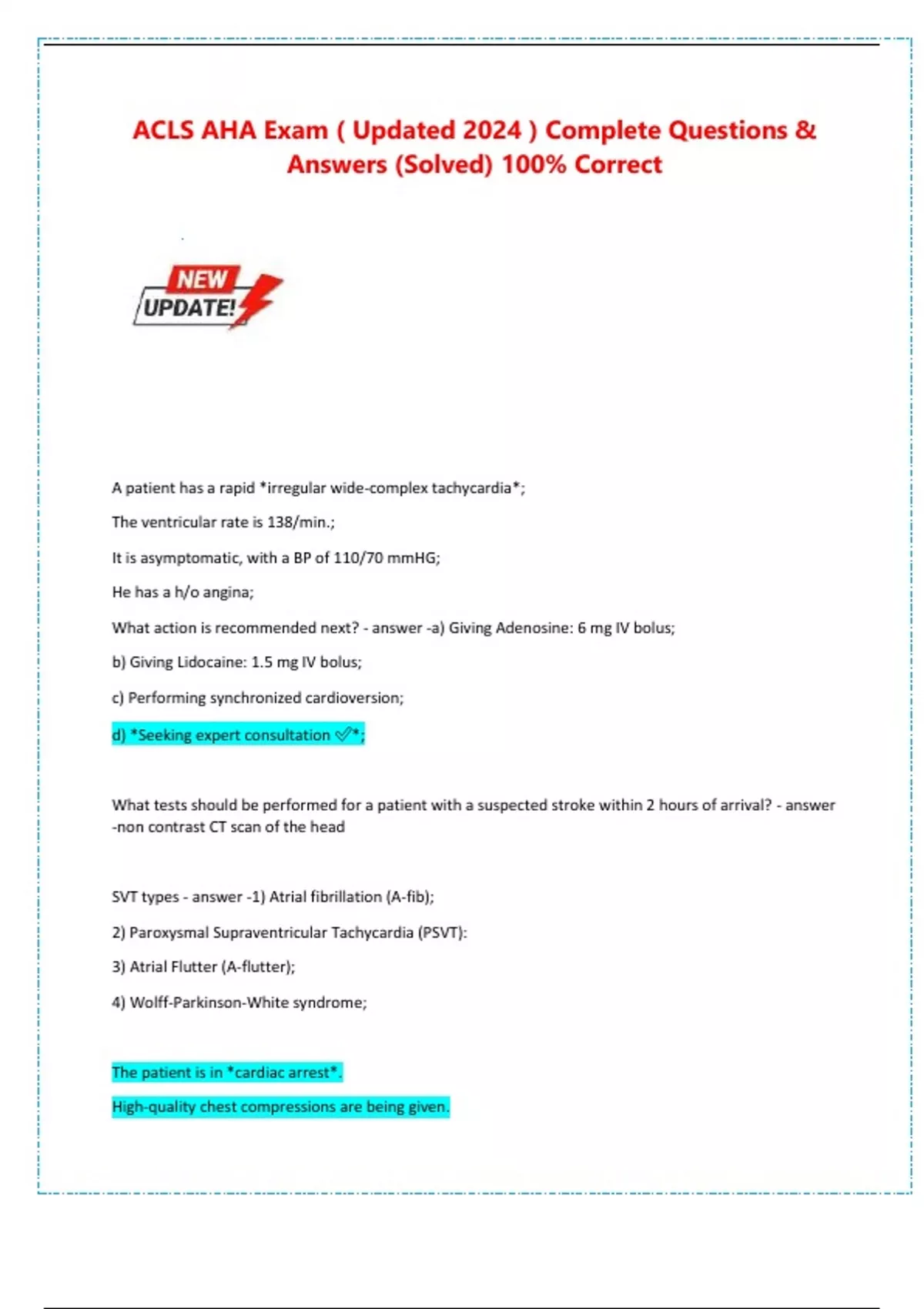 A 12-lead ECG confirms *SVT* with no evidence of ischemia or infraction.