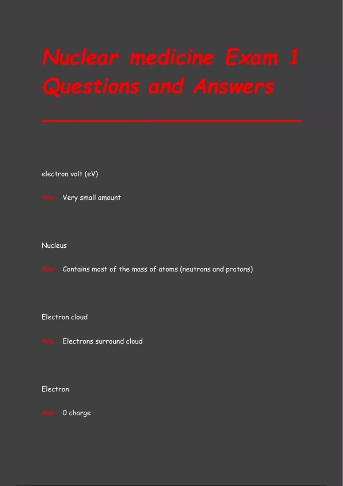 Ans- Contains most of the mass of atoms (neutrons and protons)