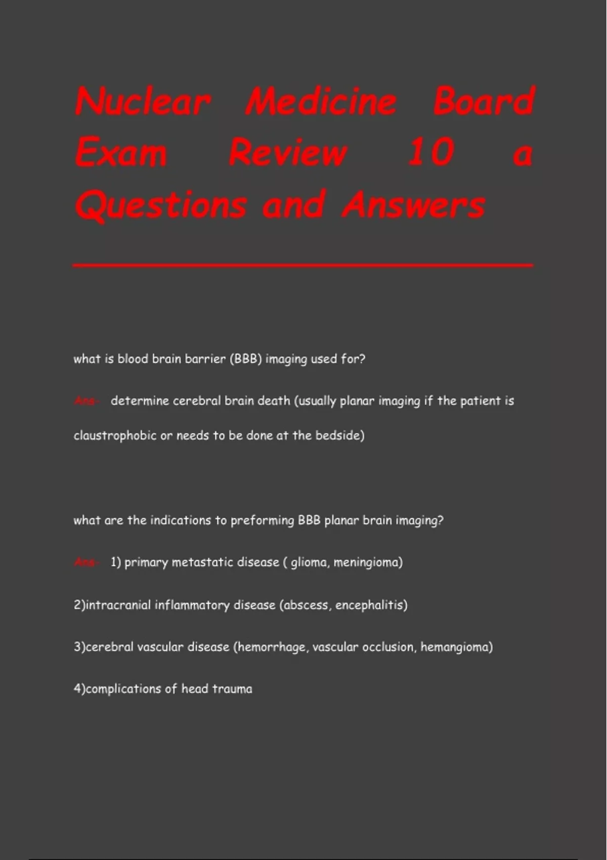 Nuclear Medicine Board Exam Review 10 a Questions and Answers