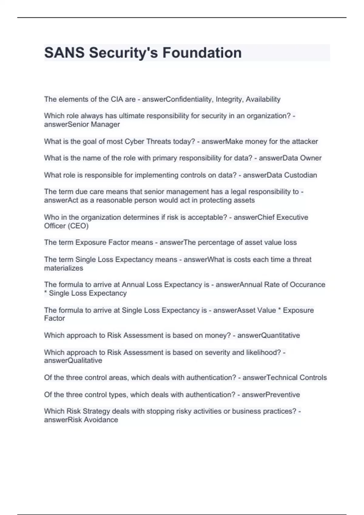 The formula to arrive at Single Loss Expectancy is - answerAsset Value * Exposure