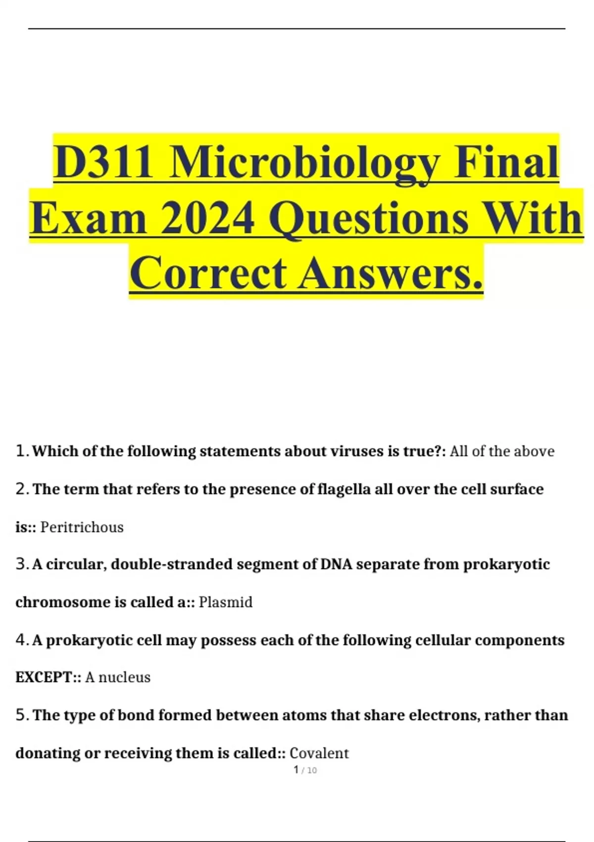 D311 Microbiology Final Exam 2024 Questions With Correct Answers..