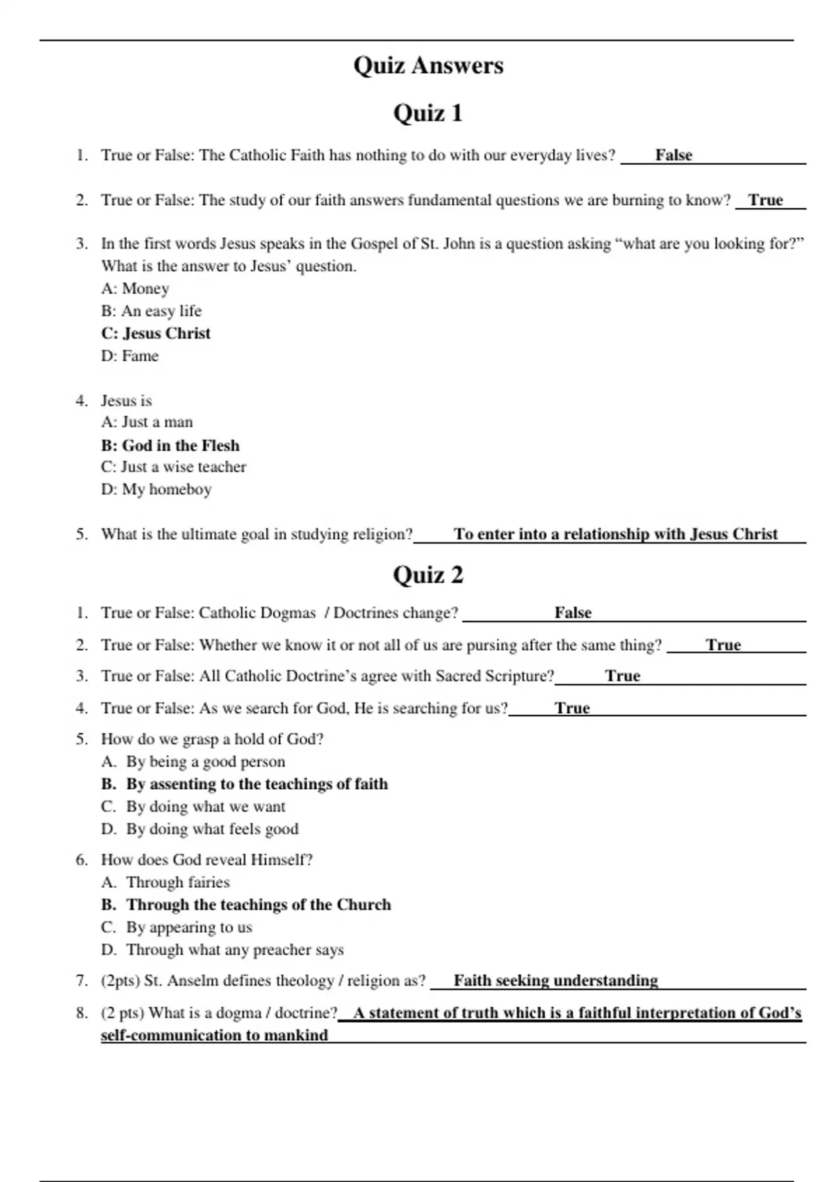 1. True or False: Catholic Dogmas / Doctrines change? False