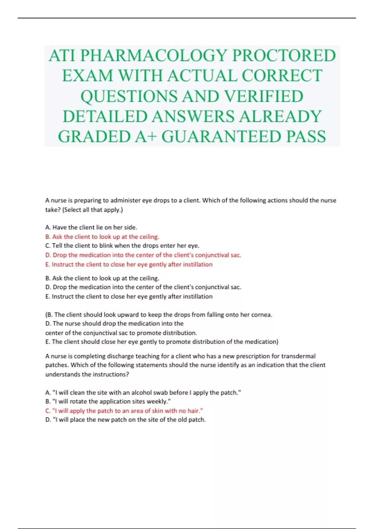 ATI PHARMACOLOGY PROCTORED EXAM WITH ACTUAL CORRECT QUESTIONS AND VERIFIED DETAILED ANSWERS ALREADY GRADED A+ GUARANTEED PASS