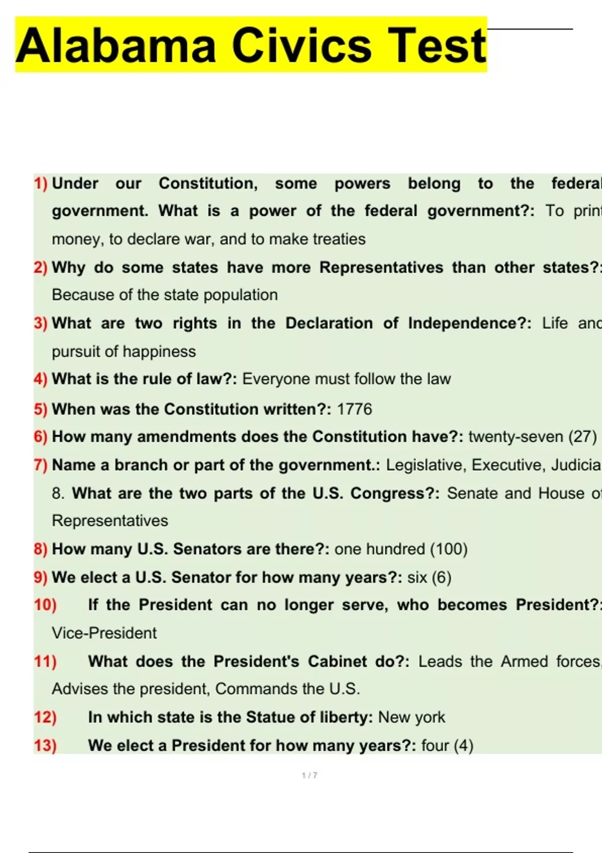 , . Alabama Civics Test