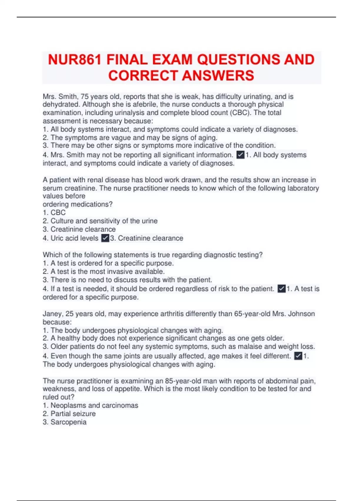 4. The patient may not report significant signs and symptoms. ✅1. Older patients with