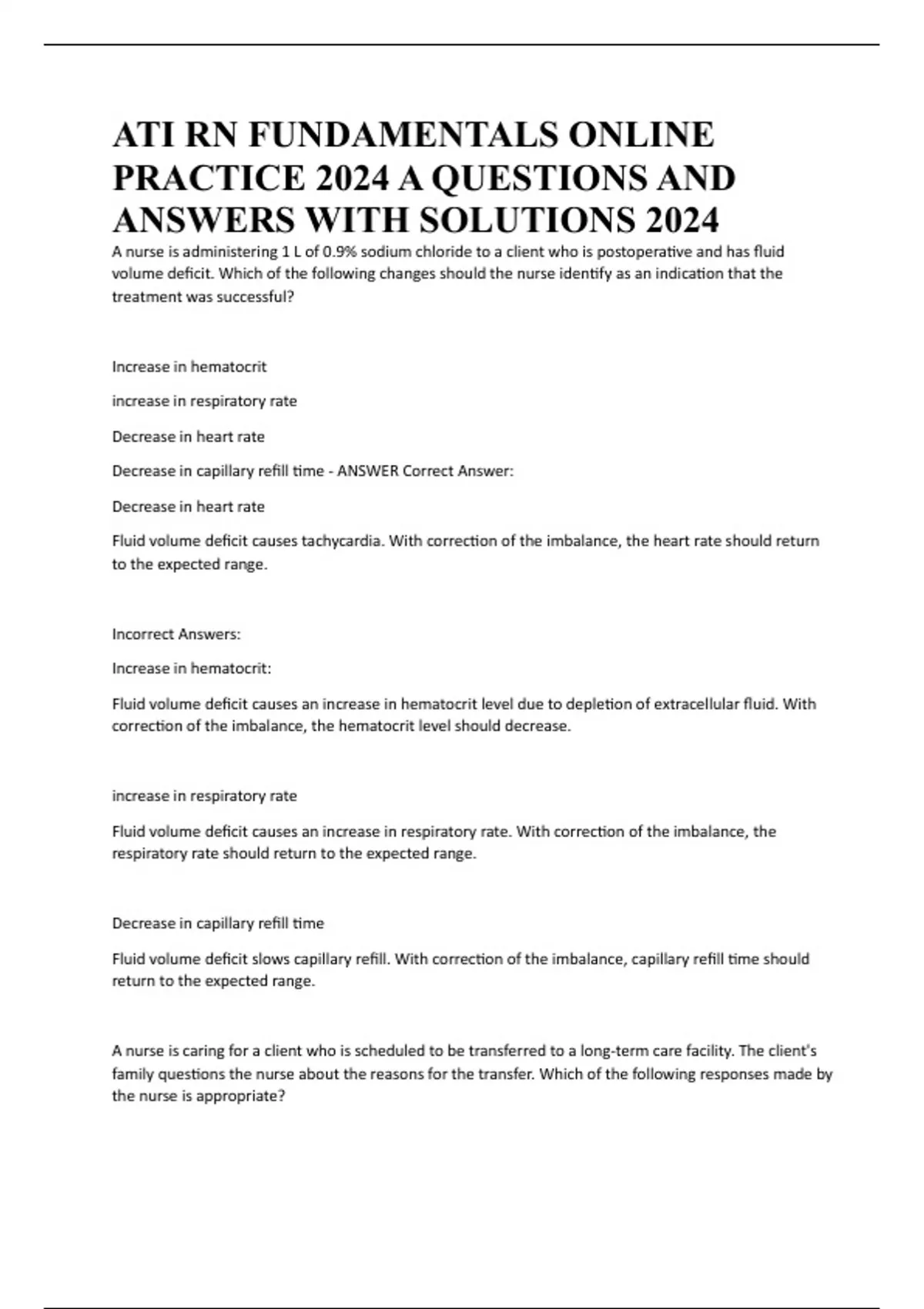 A nurse is caring for a client who is scheduled to be transferred to a long-term care facility. The client's