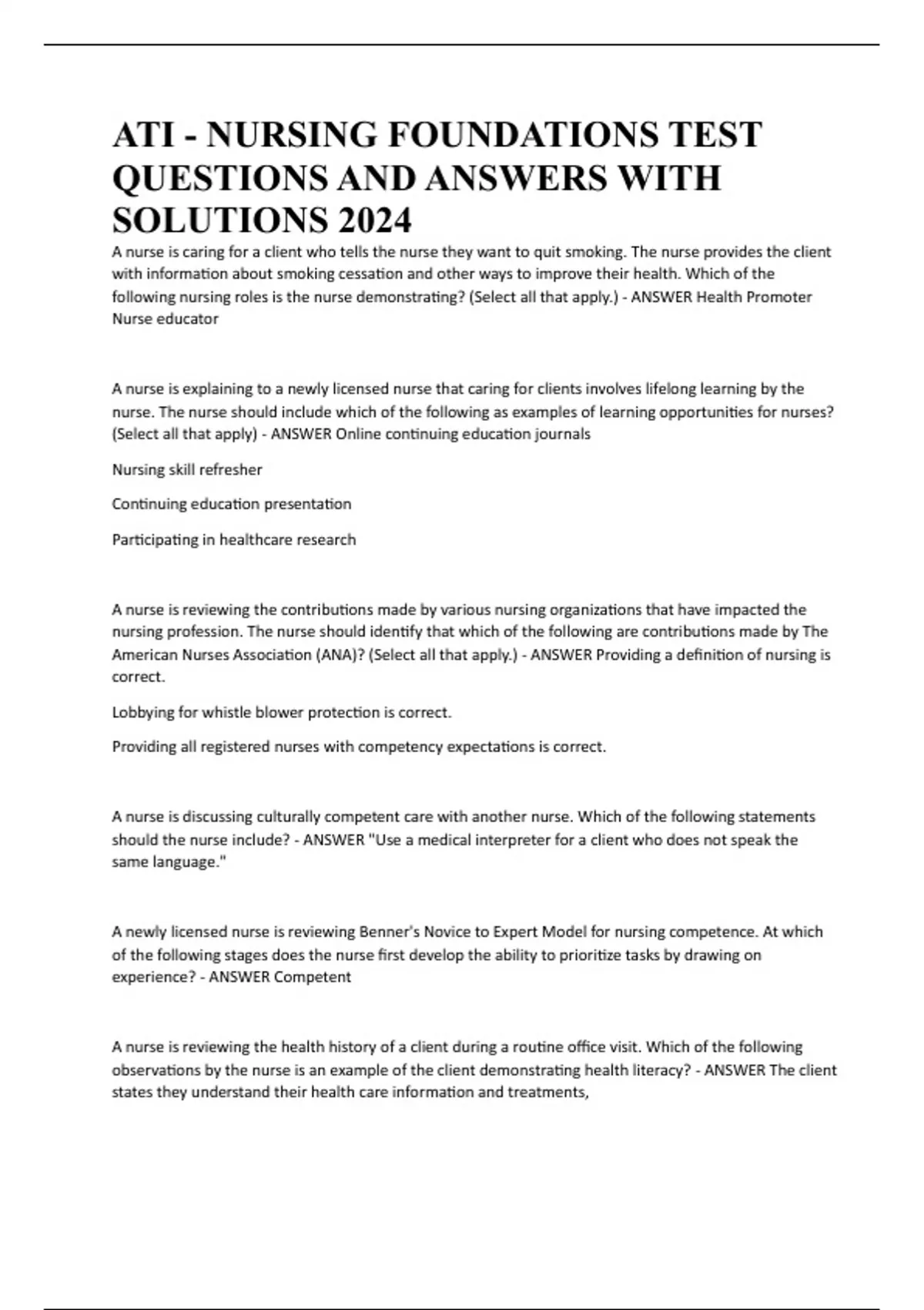 ATI - NURSING FOUNDATIONS TEST QUESTIONS AND ANSWERS WITH SOLUTIONS 2024