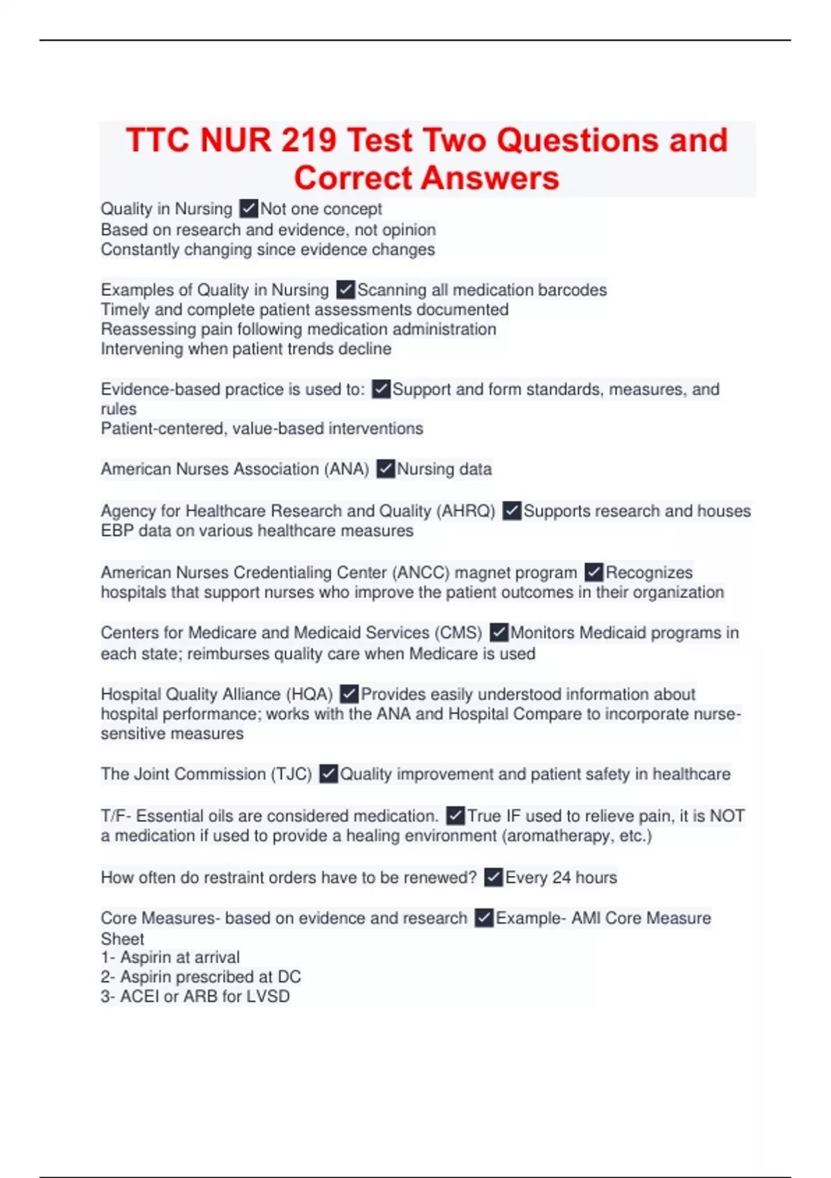 TTC NUR 219 Test Two Questions and