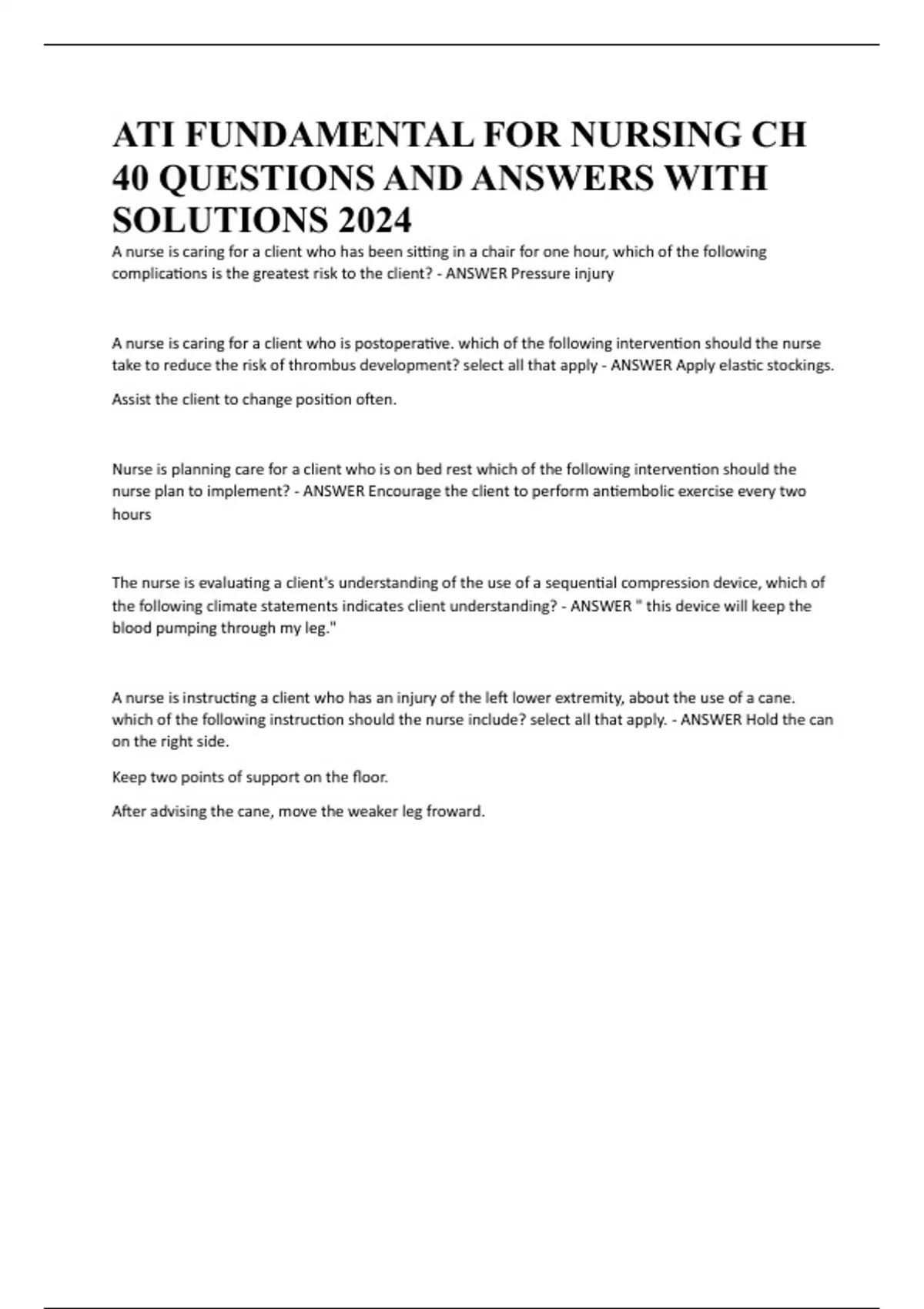 nurse plan to implement? - ANSWER Encourage the client to perform antiembolic exercise every two