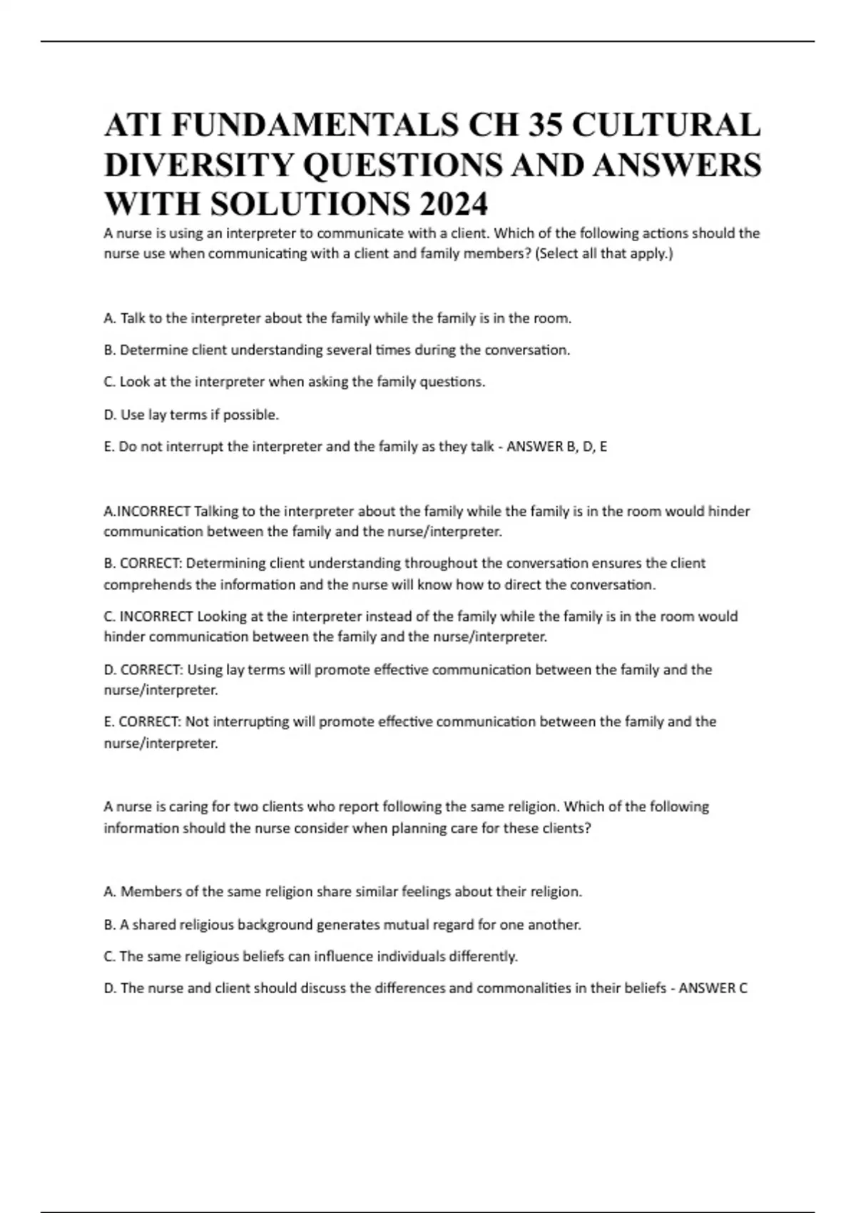 DIVERSITY QUESTIONS AND ANSWERS