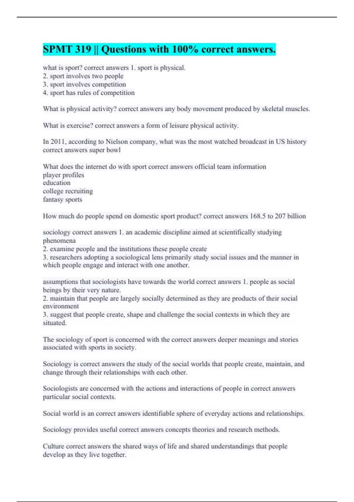 Current research in the sociology of sport focuses on correct answers physical culture which